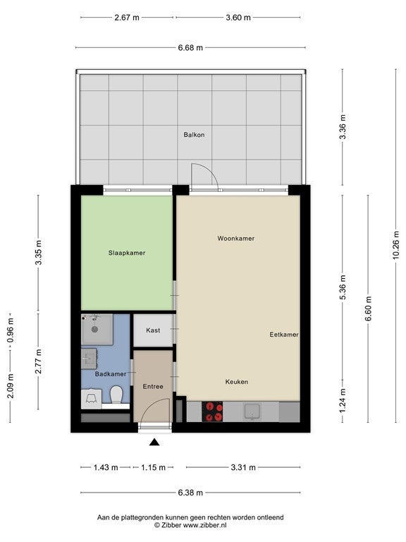 - De portiekflat heeft een woonoppervlakte van 42 m² en beschikt over 2 kamers, waarvan 1 slaapkamer;