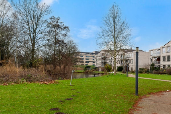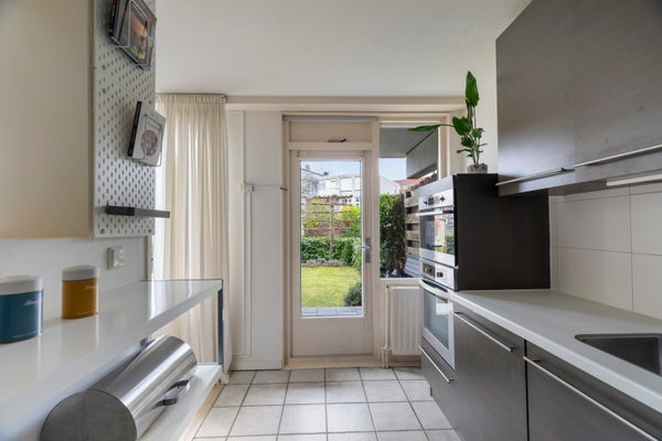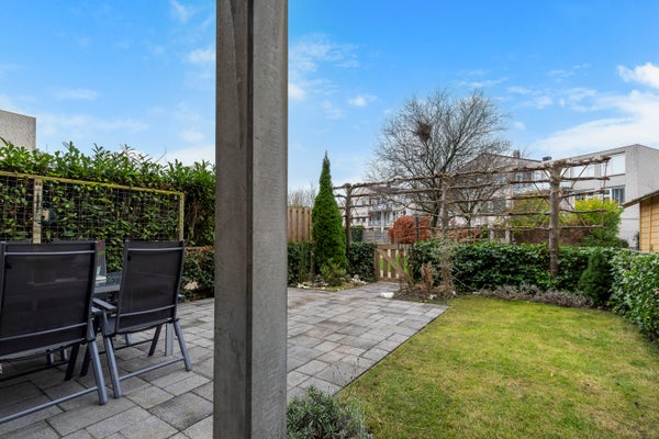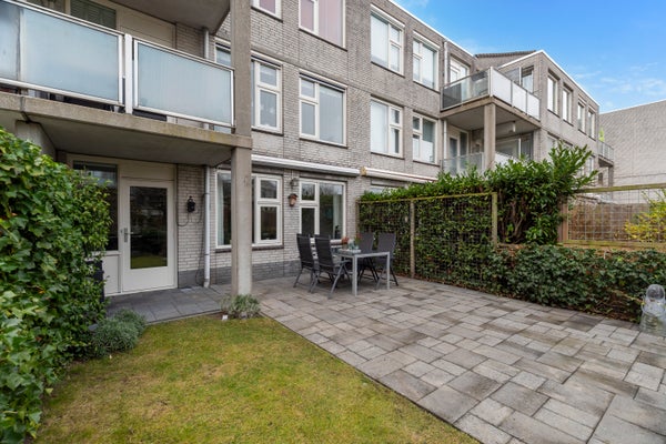 De eigen entree zorgt voor extra privacy. In de centrale hal zijn de slaapkamers en een functionele badkamer te vinden, evenals een aparte toiletruimte en bergkast. De lichte woonkamer met open keuken beschikt over moderne inbouwapparatuur en biedt toegang tot de onderhoudsvriendelijke achtertuin, die aan een groen parkje grenst.