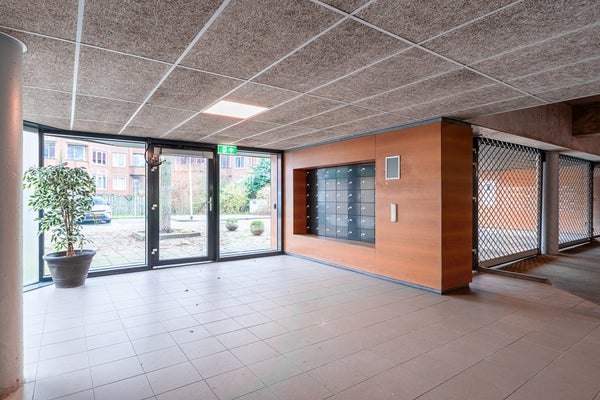 Afgesloten entree met brievenbussen, bellentableau met videofoon en toegang tot de afgesloten parkeergarage, bergingen in de onderbouw, trappenhuis en liftinstallatie.