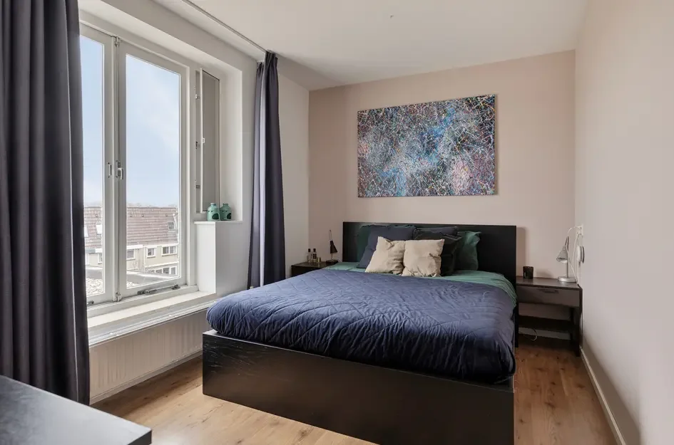 - De galerijflat heeft een woonoppervlakte van 82 m² en beschikt over 3 kamers, waarvan 2 slaapkamers;