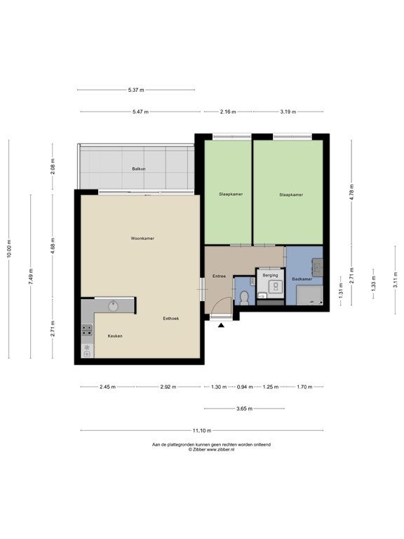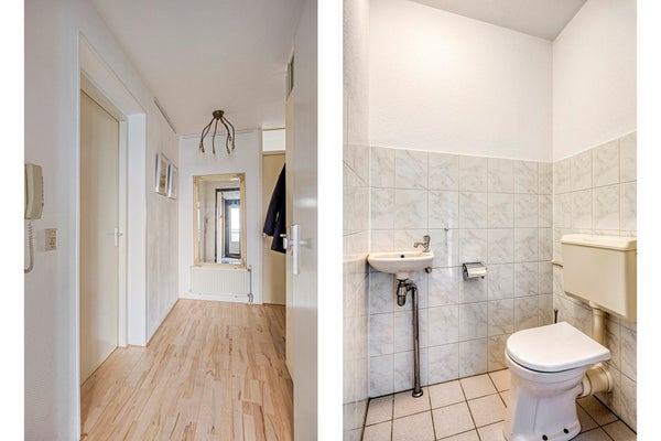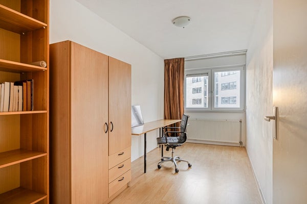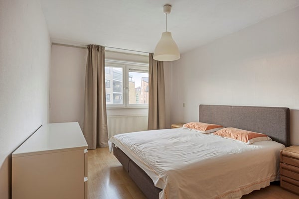 - De portiekflat heeft een woonoppervlakte van 84 m² en beschikt over 3 kamers, waarvan 2 slaapkamers;