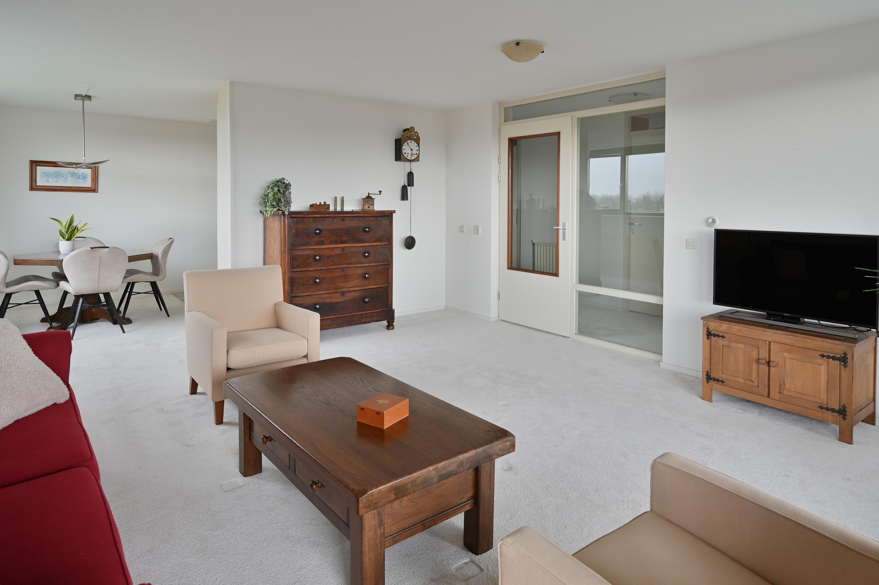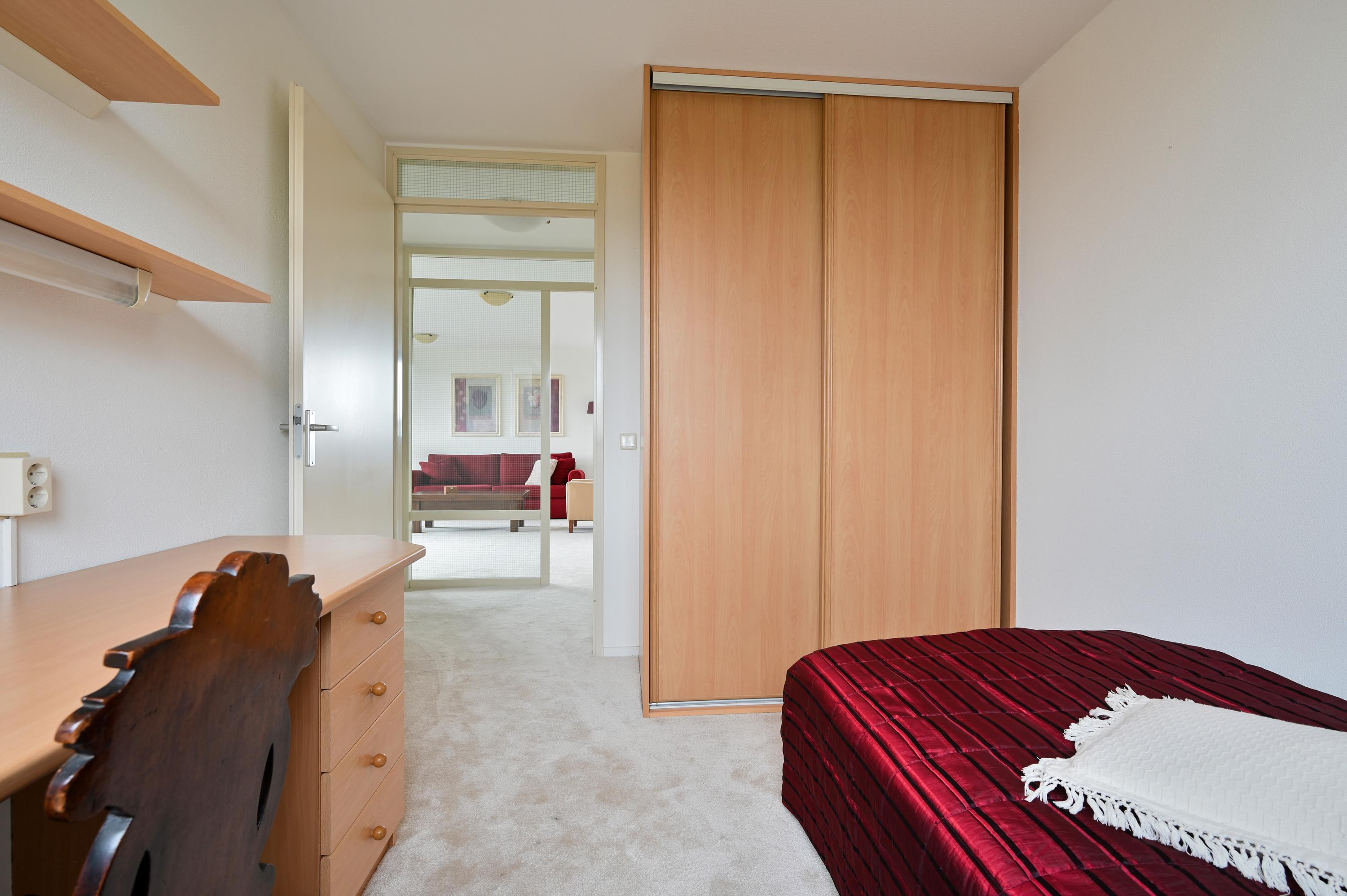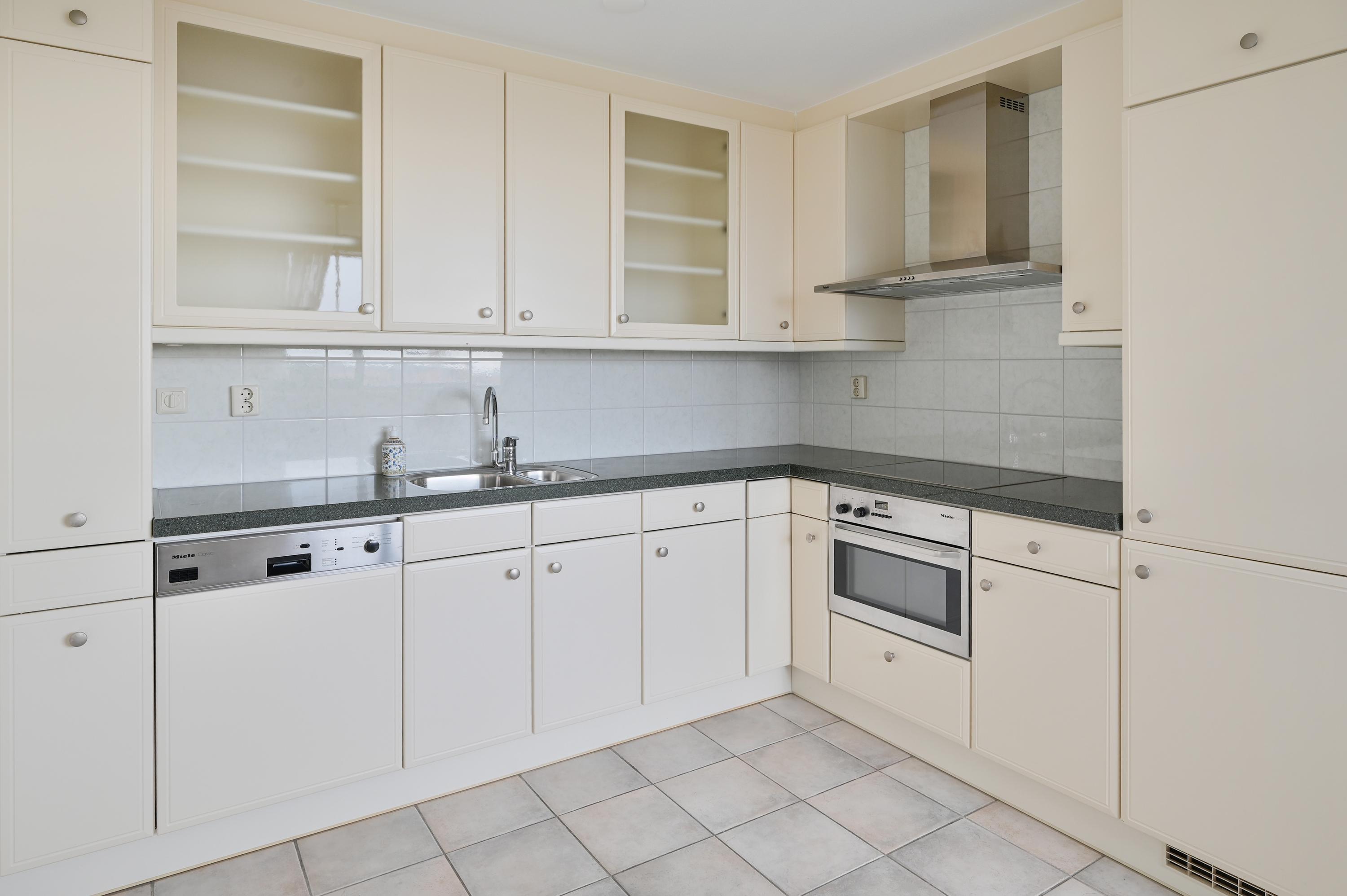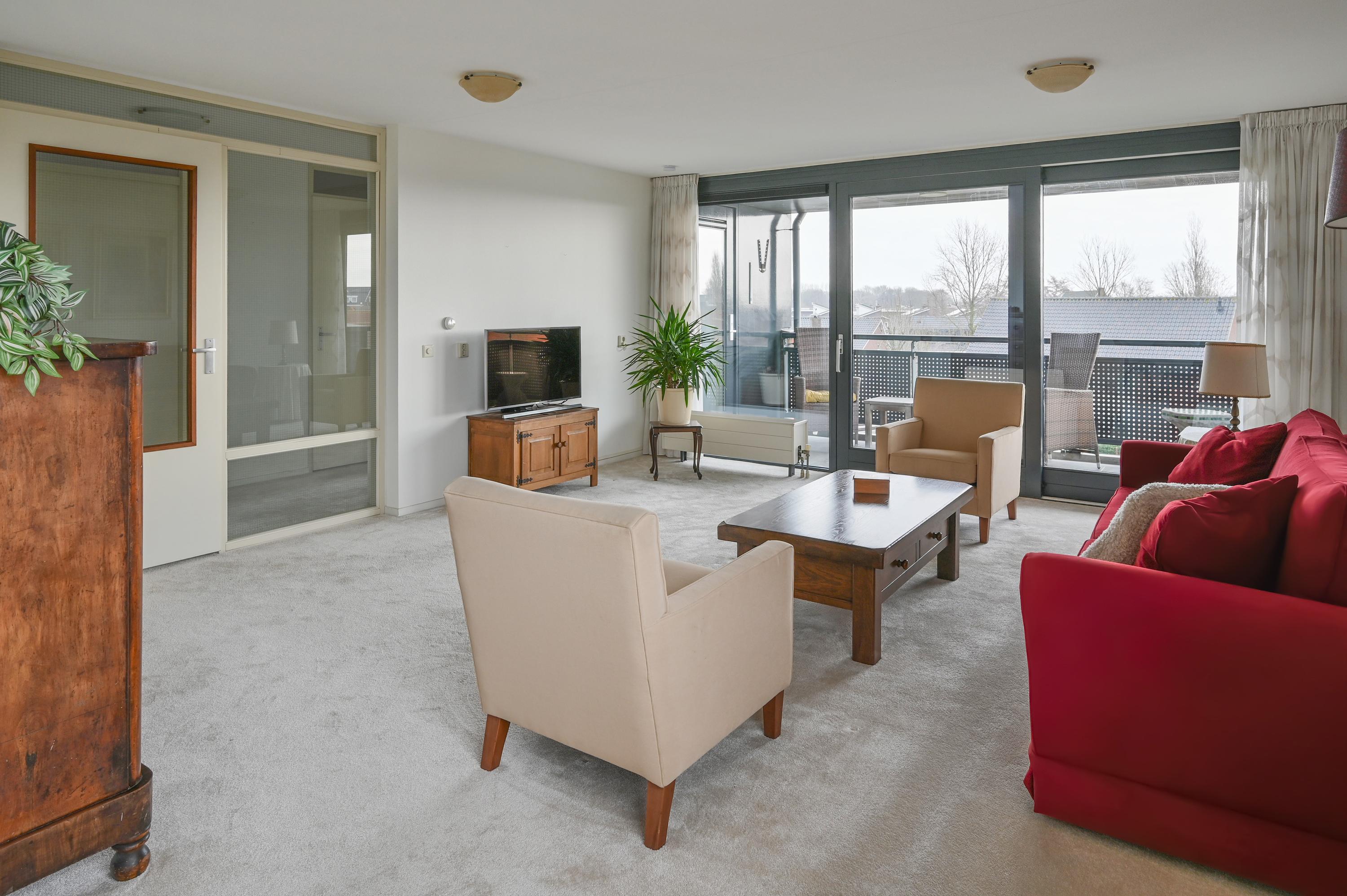 Dit 55+ topappartement met garage en berging ligt op de bovenste verdieping van het appartementencomplex in De Kwakel. Het heeft twee slaapkamers en biedt een prachtig uitzicht op de Ringvaart door de brede raampartij. De indeling is speels en de woonkamer met L-vormige keuken is ruim genoeg voor een zithoek en eettafel. De grootste slaapkamer heeft directe toegang tot het balkon, dat ook via de woonkamer bereikbaar is. De badkamer is praktisch ingericht met een hoekdouche en wastafel, en er is een aparte toiletruimte. Op de begane grond is er een garage met elektrische deur en extra berging. De lift en nabijheid van winkels en openbaar vervoer maken het wonen hier comfortabel. De actieve VVE houdt het complex prima onderhouden.