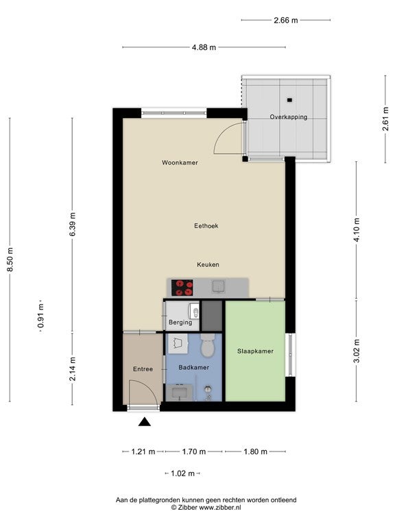 - De benedenwoning heeft een woonoppervlakte van 39 m² en beschikt over 2 kamers, waarvan 1 slaapkamer;