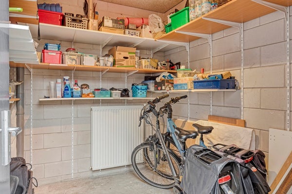Achter de woning, grenzend aan de slaapkamer, bevindt zich een schuur waar meerdere fietsen te stallen zijn.