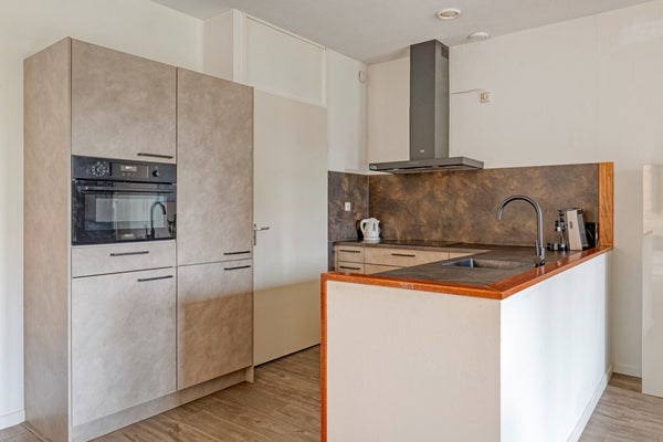 De ruime, halfopen keuken, zorgt dat u ook tijdens het koken in contact blijft met de gezelligheid in de woonkamer. De keuken (2022) is geplaatst in een hoekopstelling en is voorzien van diverse inbouwapparatuur, waaronder een vaatwasser en een combi-oven. Vanuit de keuken heeft u tevens toegang tot een ruime berging. Hier is ook de opstelplaats voor de HR-combiketel (Remeha 2022), de mechanische ventilatie unit en zonneboiler.