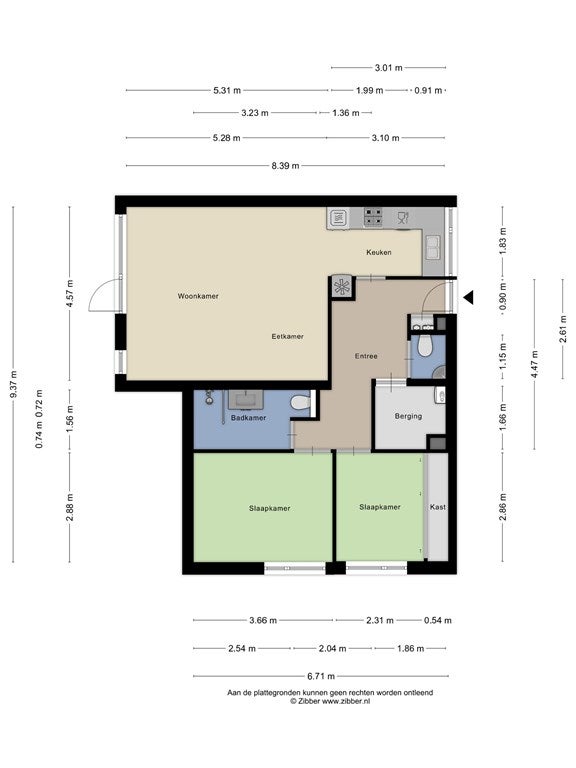 - Aanwezig (52 m², gelegen op het zuidoosten)