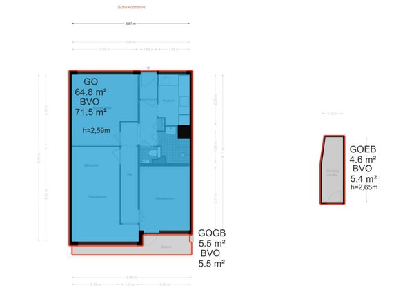 - De galerijflat heeft een woonoppervlakte van 65 m² en beschikt over 3 kamers, waarvan 2 slaapkamers;