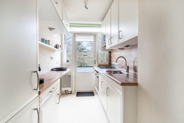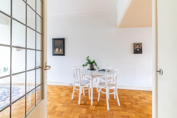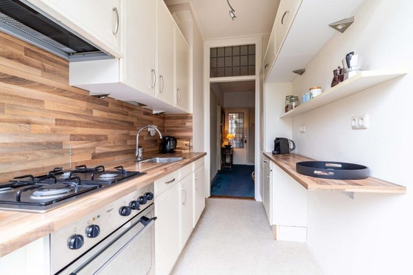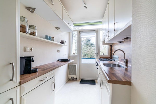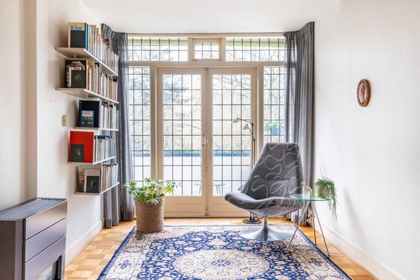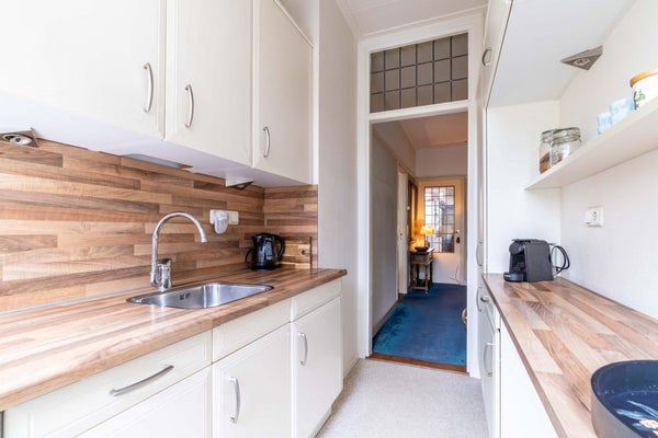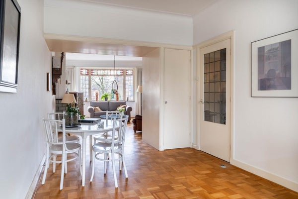 Gelegen op een toplocatie, deze ruime en sfeervolle 5-kamer jaren '30 dubbele bovenwoning biedt een zonnig balkon op het zuidwesten en originele stijldetails zoals glas-in-lood ramen. De woning, met een gebruiksoppervlakte van ongeveer 119 m2 en een inhoud van circa 386 m3, heeft een verrassende indeling en ligt naast het groene park van de Botanische tuin. Binnen vijf minuten ben je in het centrum van Delft en de TU Delft is ook makkelijk bereikbaar. De indeling omvat op de begane grond een hal met een trap naar de eerste verdieping. Daar vind je een ruime woonkamer, gesloten keuken met toegang tot het balkon, en een separaat toilet. De tweede verdieping herbergt een grote slaapkamer met dakkapel, een derde slaapkamer en een wasruimte die kan worden omgevormd tot een vierde slaapkamer. De badkamer is modern en voorzien van een douche en Velux-dakvenster. Het buitenschilderwerk werd in 2022 uitgevoerd, en er zijn twee gaskachels voor verwarming.