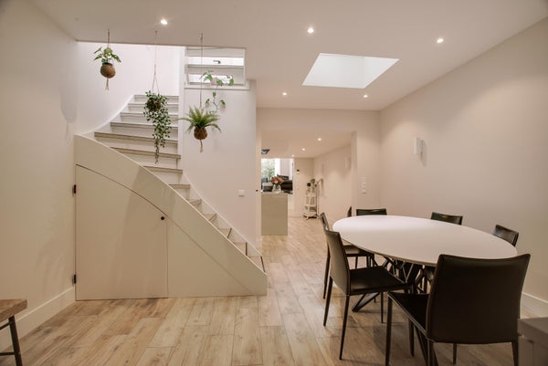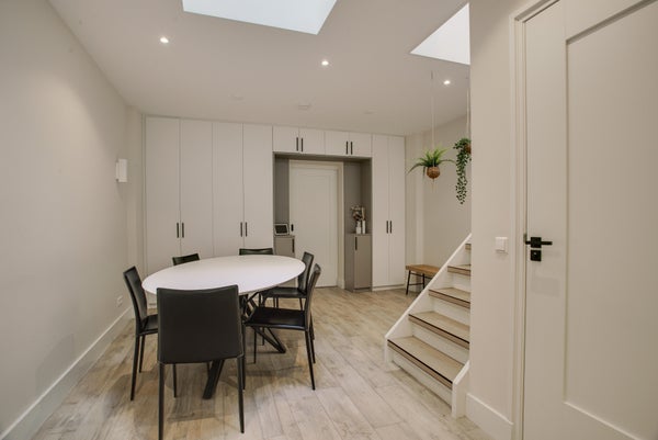 - De beneden + bovenwoning heeft een woonoppervlakte van 170 m² en beschikt over 4 kamers, waarvan 3 slaapkamers;