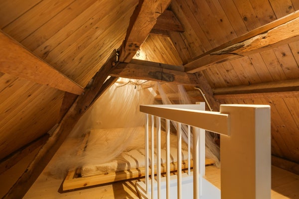 In de woonkamer is een vaste trap welke toegang geeft tot een berging/vliering, echter tevens als slaapvertrek kan dienen.