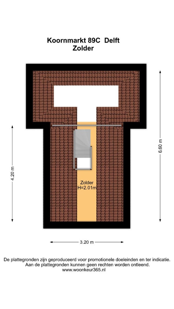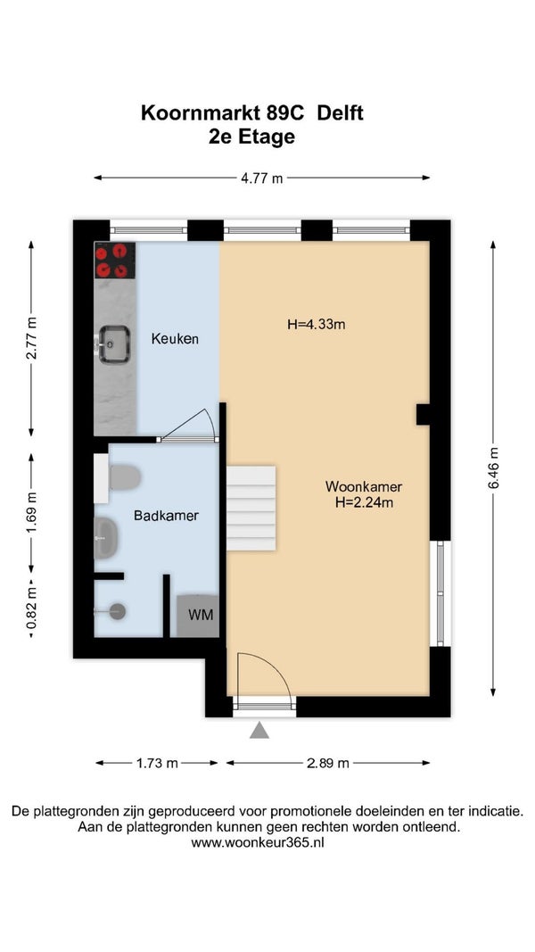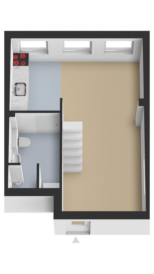 - De bovenwoning heeft een woonoppervlakte van 29 m² en beschikt over 2 kamers, waarvan 1 slaapkamer;