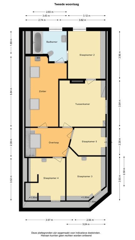 - De bovenwoning heeft een woonoppervlakte van 174 m² en beschikt over 7 kamers, waarvan 6 slaapkamers;