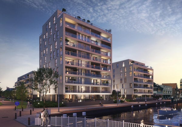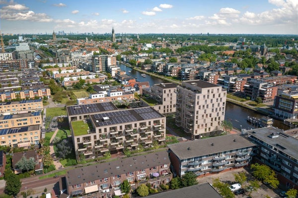 Dit is een unieke kans om een ruim drie kamer appartement te kopen in het nieuwbouwproject De Brugwachters, dat in aanbouw is. Gelegen op de vijfde verdieping van gebouw U, biedt het appartement een schitterend uitzicht op De Schie vanuit het terras van circa 12 m2. Het heeft een eigen parkeerplaats in de ondergelegen parkeerkelder en zowel inpandig als in de stallinggarage is er een berging beschikbaar. De woonkamer met open keuken is licht en voorzien van openslaande deuren naar het terras. De badkamer is ruim, en er zijn twee slaapkamers, waarvan één toegang heeft tot het terras. Dit project, met oplevering in 2028, omvat vier moderne gebouwen dicht bij het centrum van Delft, met uitstekende verbindingen en een gemeenschappelijke groene binnentuin.