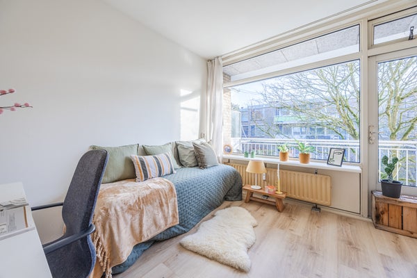 In de geliefde woonwijk Hof van Delft vindt u dit sfeervolle driekamerappartement op de tweede verdieping, met een ruime berging in de onderbouw en twee balkons. Het appartement biedt een prachtig uitzicht over het omliggende groen. De indeling omvat een centrale hal met toegang tot de royale woonkamer en een aparte keuken die leidt naar het zonnige balkon op het westen. Er zijn twee slaapkamers, waarvan één met directe toegang tot de badkamer met douche en wastafel. Het appartement is goed bereikbaar met voorzieningen zoals een supermarkt en openbaar vervoer op loopafstand. Met een woonoppervlakte van 65 m² en energielabel C is het ideaal voor comfortabel wonen. De actieve VvE vraagt een maandbijdrage van € 160,12.