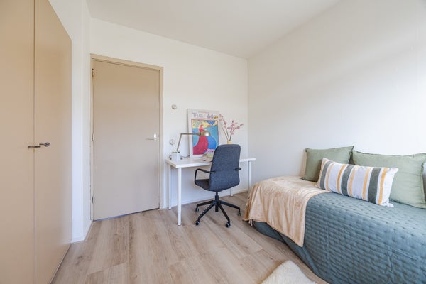 - De galerijflat heeft een woonoppervlakte van 65 m² en beschikt over 3 kamers, waarvan 2 slaapkamers;