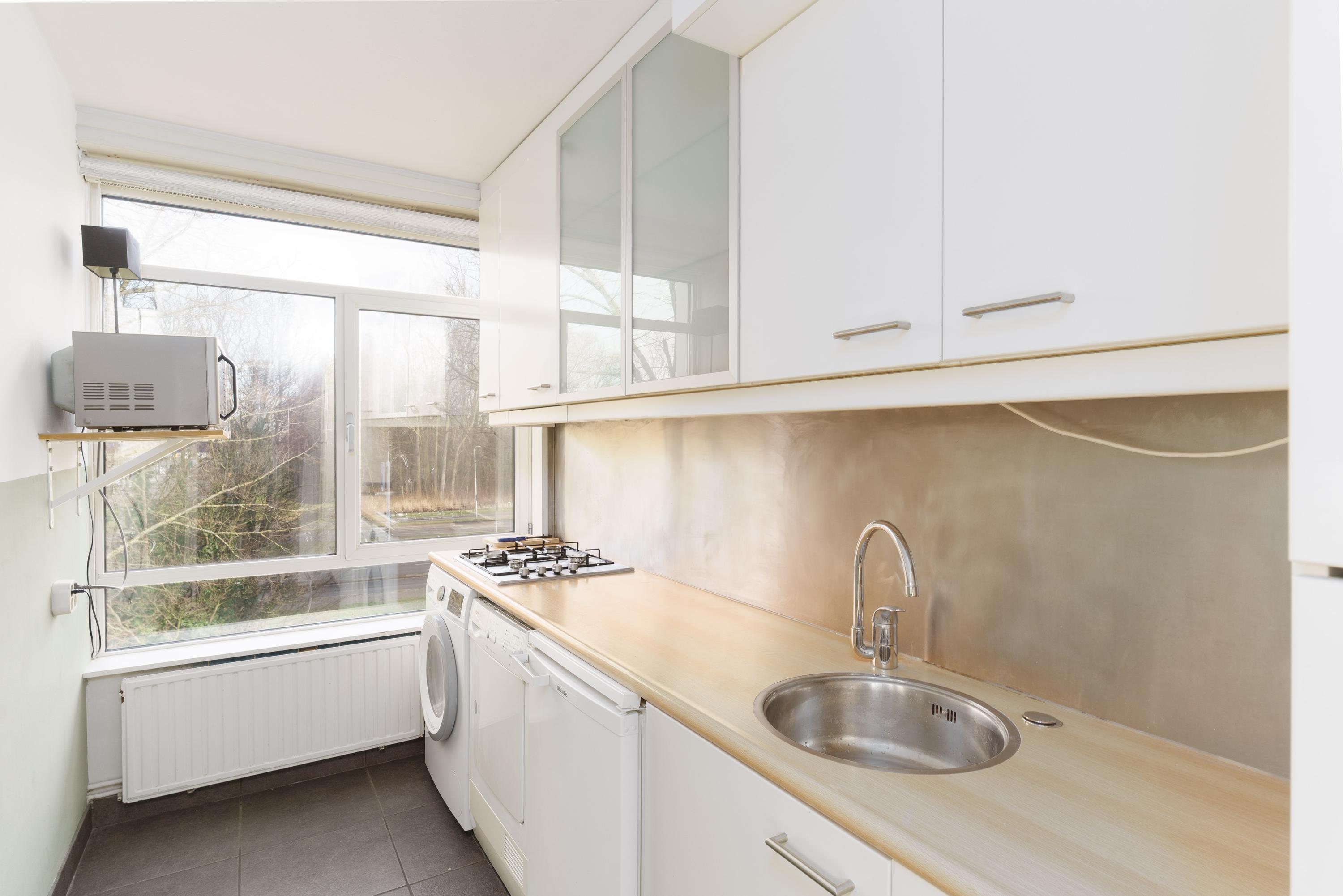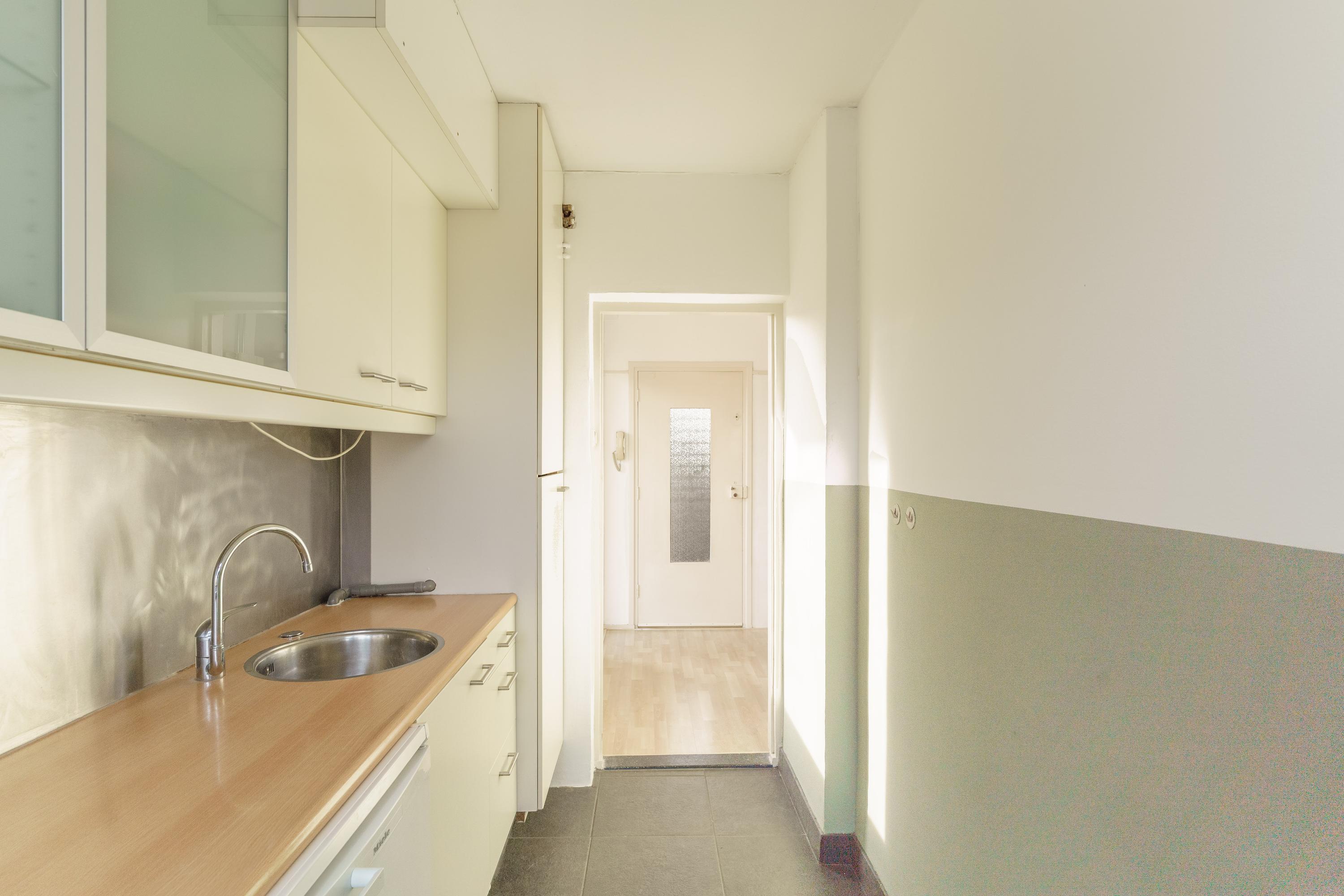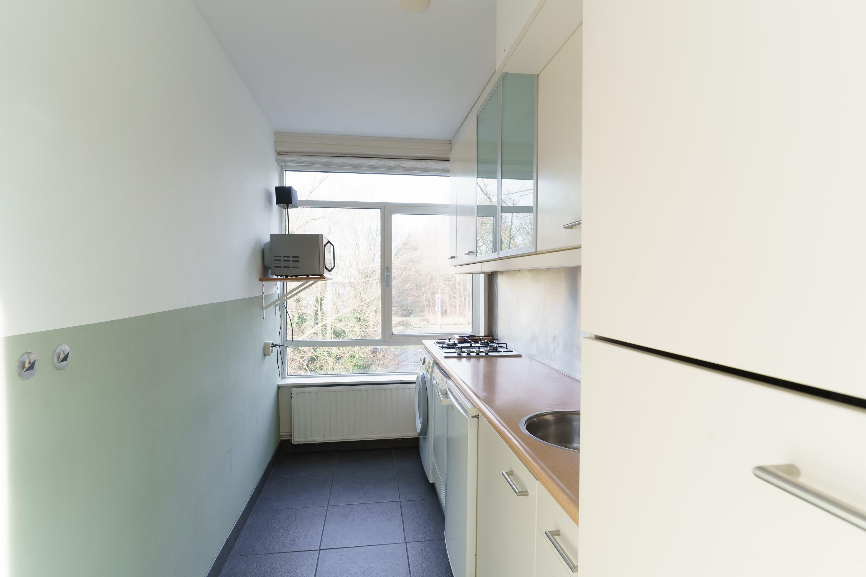 Dit goed onderhouden 2-kamerappartement aan de Van Adrichemstraat 6 in Delft bevindt zich op de derde woonlaag en biedt een balkon op het zuiden, perfect voor de ochtendzon. De centrale entree leidt naar de hal en het trappenhuis. Binnen vind je een lichte woonkamer van 4.71x3.70 m, een slaapkamer van 3.73x3.19 m met een wastafel en een nette, moderne keuken van 3.62x1.80 m. De keuken is voorzien van een kookplaat, afzuigkap en aansluitingen voor de wasmachine. Bovendien is er een separate berging in de kelder. Gelegen in de Kuyperwijk dicht bij winkels en openbaar vervoer, heeft dit appartement een woonoppervlak van circa 55 m². De Vereniging van Eigenaren is actief en de maandelijkse bijdrage bedraagt € 215. Bouwjaar is 1957. Oplevering in overleg.