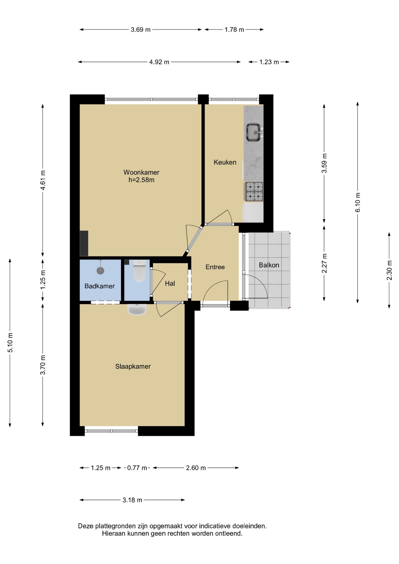 - De galerijflat heeft een woonoppervlakte van 55 m² en beschikt over 2 kamers, waarvan 1 slaapkamer;