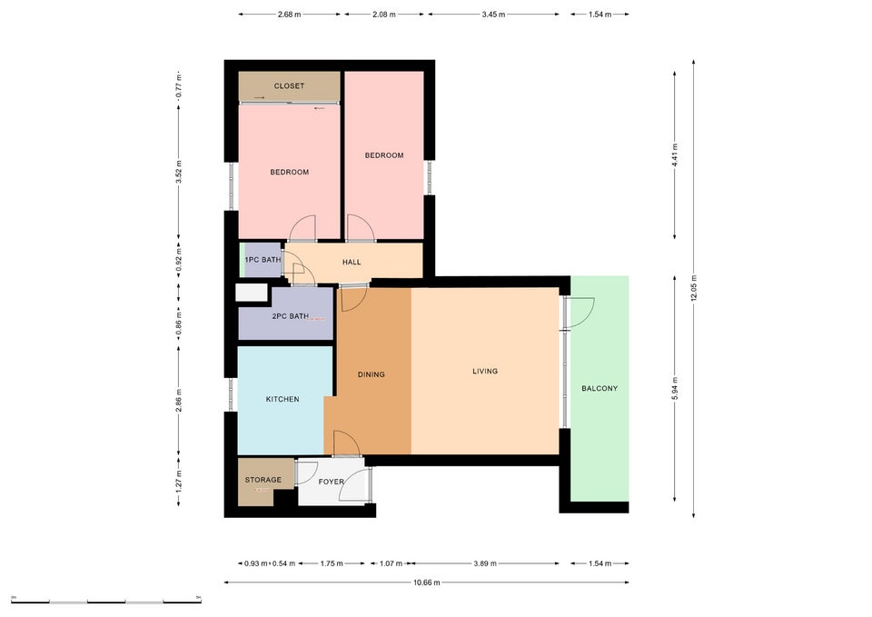 - De galerijflat heeft een woonoppervlakte van 69 m² en beschikt over 3 kamers, waarvan 2 slaapkamers;