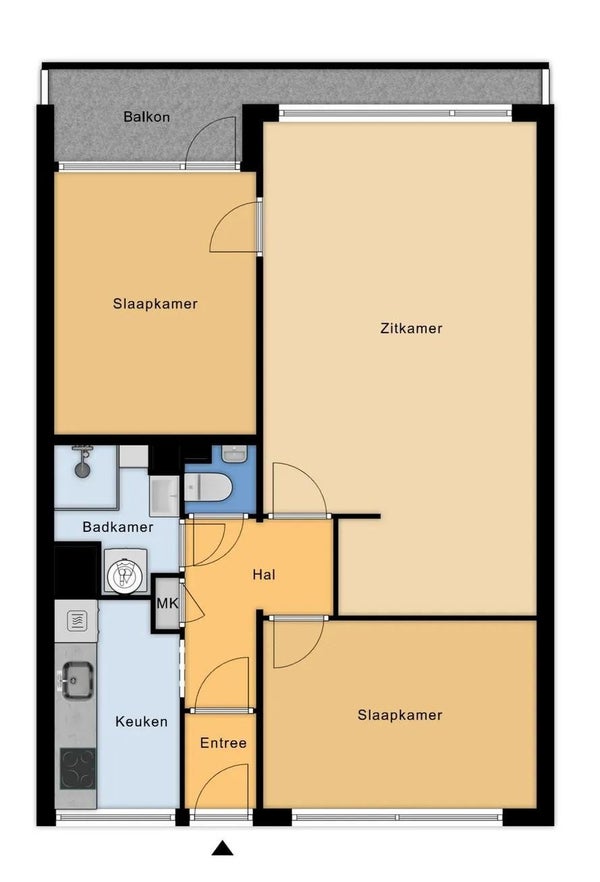 • De galerijflat heeft een woonoppervlakte van 65 m² en beschikt over 3 kamers, waarvan 2 slaapkamers;