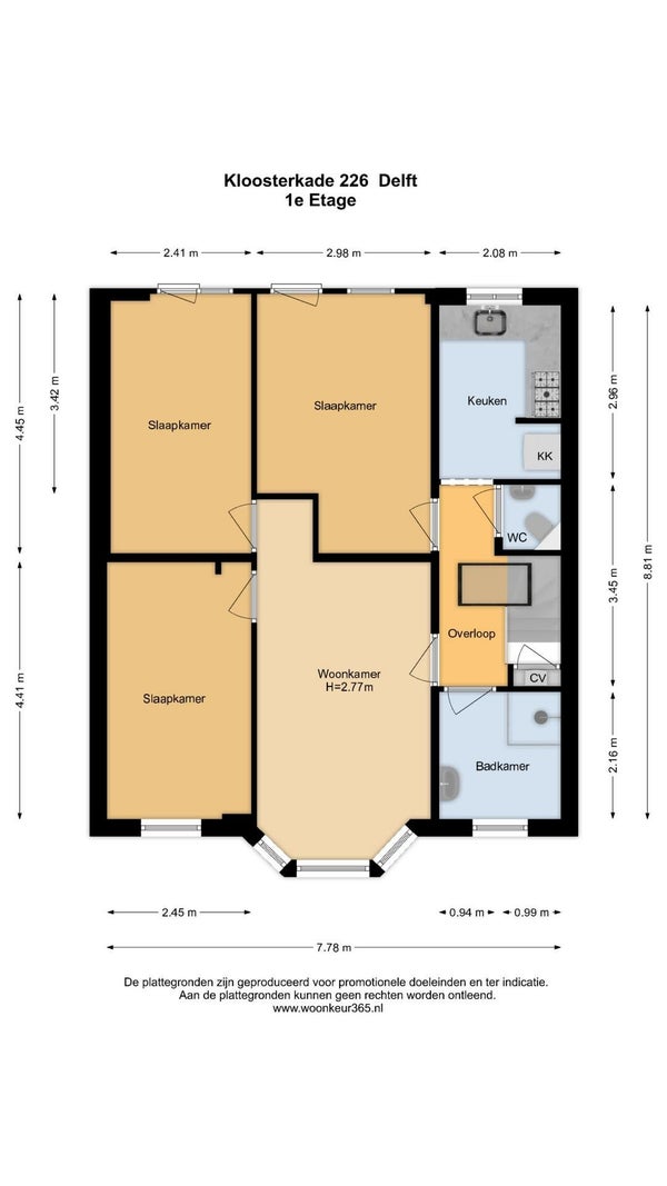 - De bovenwoning heeft een woonoppervlakte van 72 m² en beschikt over 4 kamers, waarvan 3 slaapkamers;
