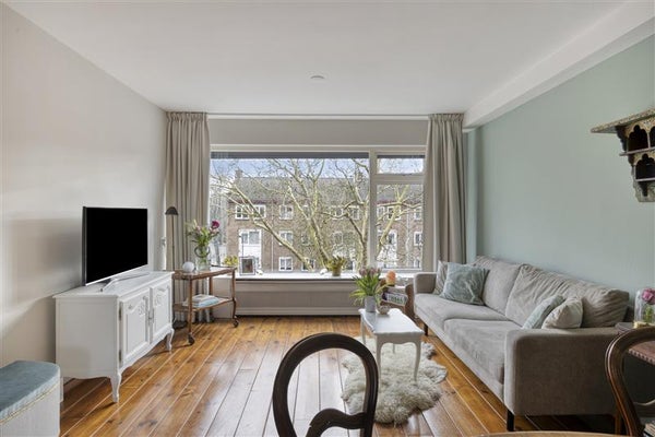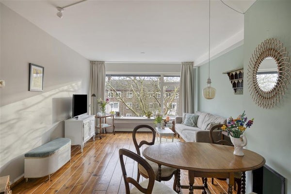 De lichte woonkamer is voorzien van een grote raampartij, die zorgt voor een prettige natuurlijke lichtinval. Via fraaie en-suite deuren is er toegang tot de grootste slaapkamer. Deze ruime kamer beschikt over een tweepersoonsbed en directe toegang tot het balkon. De tweede slaapkamer is ideaal als werk-, logeer- of kinderkamer.