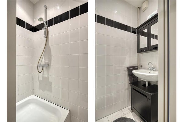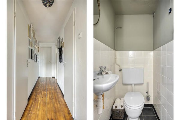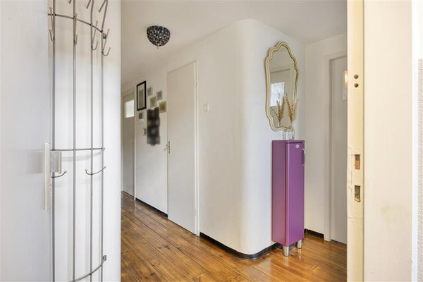 Vanuit het trappenhuis heb je toegang tot het appartement. Vanuit de hal van het appartement heb je toegang tot de keuken, de badkamer, de woonkamer, de 2 slaapkamers en het separate toilet.