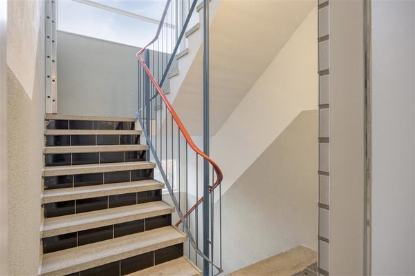 Centrale entree met bellentableau, intercom en brievenbussen. Toegang tot het trappenhuis, een gemeenschappelijke fietsenberging en de privé berging.