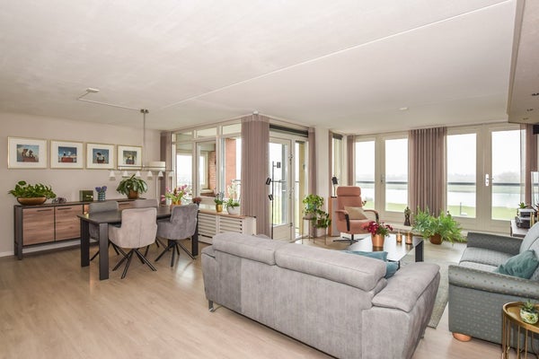 Vanuit de woonkamer heeft u een schitterend en weids uitzicht over de Maas en uiterwaarden, waar u iedere dag weer van kan genieten met zo'n uitzicht!