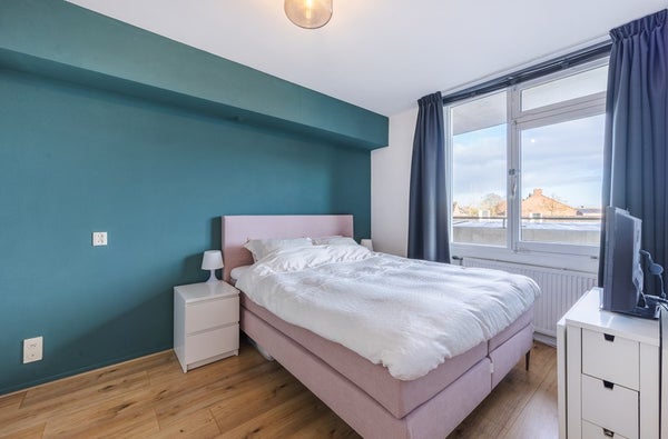 Aan de voorzijde van het appartement bereik je vanuit de woonkamer het ruime balkon. Met een afmeting van 5,96 x 1,48 meter is dit balkon ruimer dan je normaal gesproken verwacht bij een vergelijkbaar appartement.
