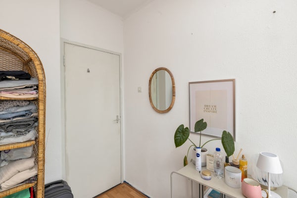 Bij binnenkomst kom je in de hal met toegang tot alle vertrekken. Via de hal heb je toegang tot 2 gelijksoortige slaapkamers en de woonkamer. De fijne L-vormige woonkamer biedt voldoende ruimte voor een comfortabele zithoek en een eethoek. Aansluitend bevindt zich de praktische keuken. Het appartement beschikt over twee slaapkamers, waarvan één uitstekend te gebruiken is als hoofdslaapkamer en de andere als werk- of logeerkamer. De badkamer is voorzien van een douche, wastafel en aansluiting voor de wasmachine.