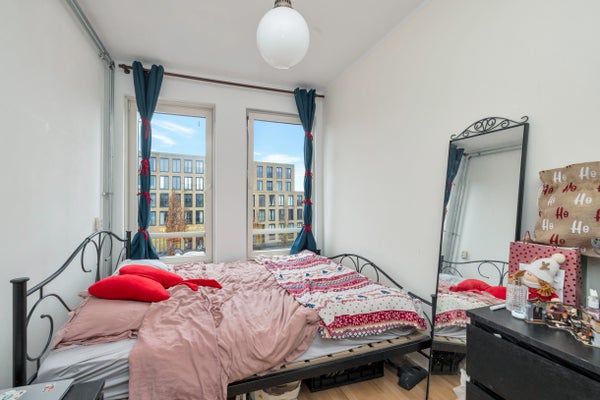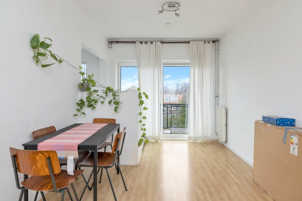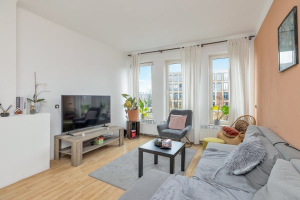 - De portiekflat heeft een woonoppervlakte van 60 m² en beschikt over 3 kamers, waarvan 2 slaapkamers;