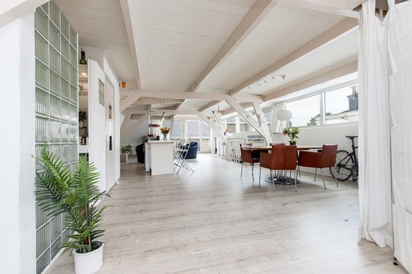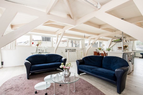 Het penthouse biedt alle ruimte voor zithoek, eethoek, studiecorner, enz.