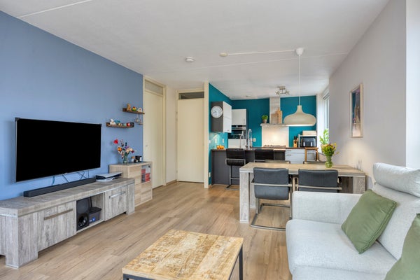 Te koop: een comfortabel en licht hoekappartement van 78 m² in het moderne appartementencomplex De Spaanse Ruiter. Dit instapklare appartement biedt vanuit de ruime woonkamer en de loggia uitzicht over het water. De open keuken met spoeleiland heeft moderne apparatuur, waaronder een 5-pits gaskookplaat en een Quooker. Er zijn twee grote slaapkamers, waaronder een met elektrisch te bedienen rolluiken en langs de achterzijde van het complex een balkon met uitzicht op groen. De badkamer beschikt over een inloopdouche en wastafelmeubel. Het appartement heeft een eigen parkeerplaats en berging in de kelder, met een centrale entree voorzien van videofoon en lift. Gelegen aan een autoluwe straat nabij Ploossche Plas en winkelcentra, biedt dit appartement rust en ruimte.