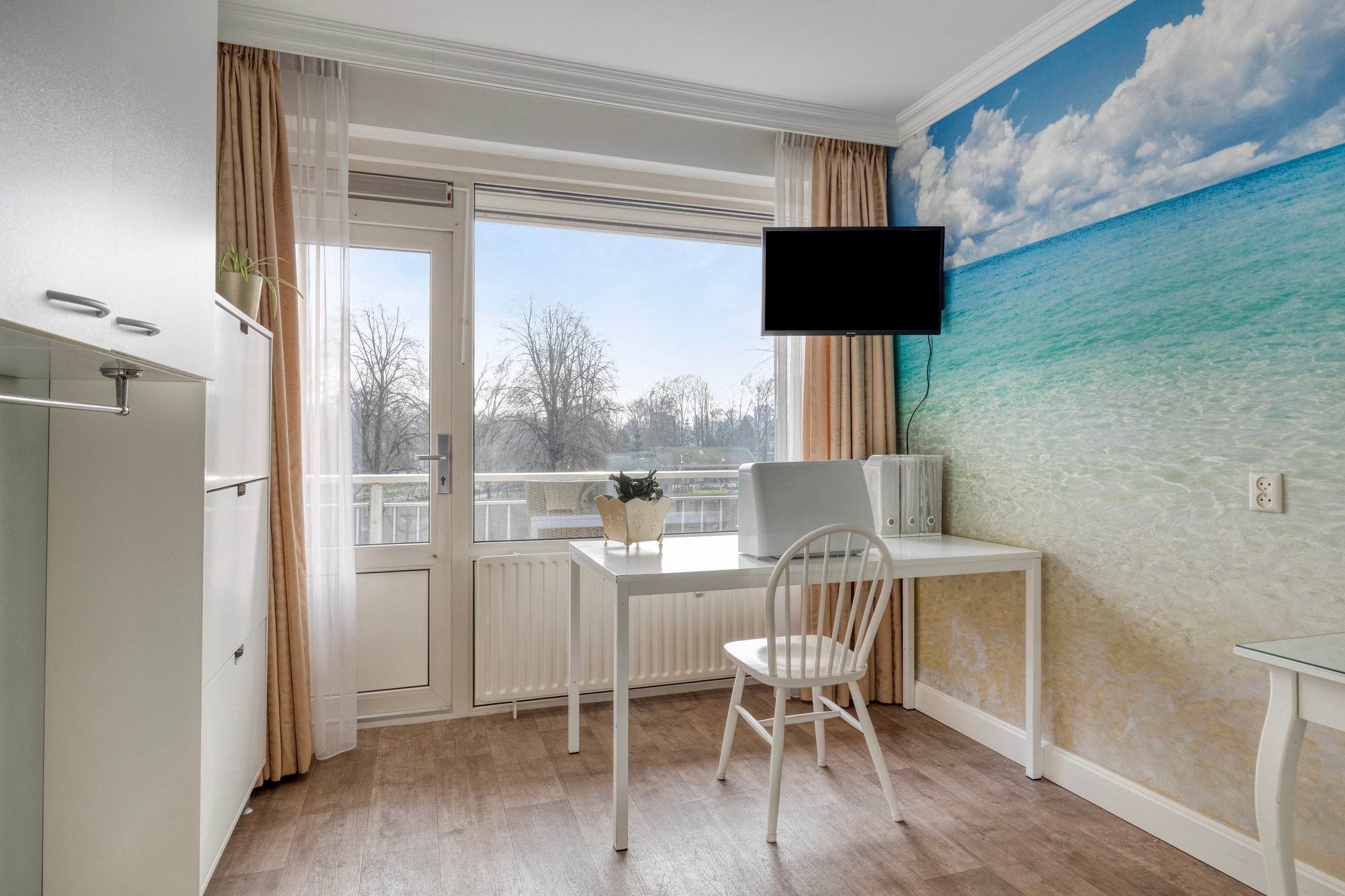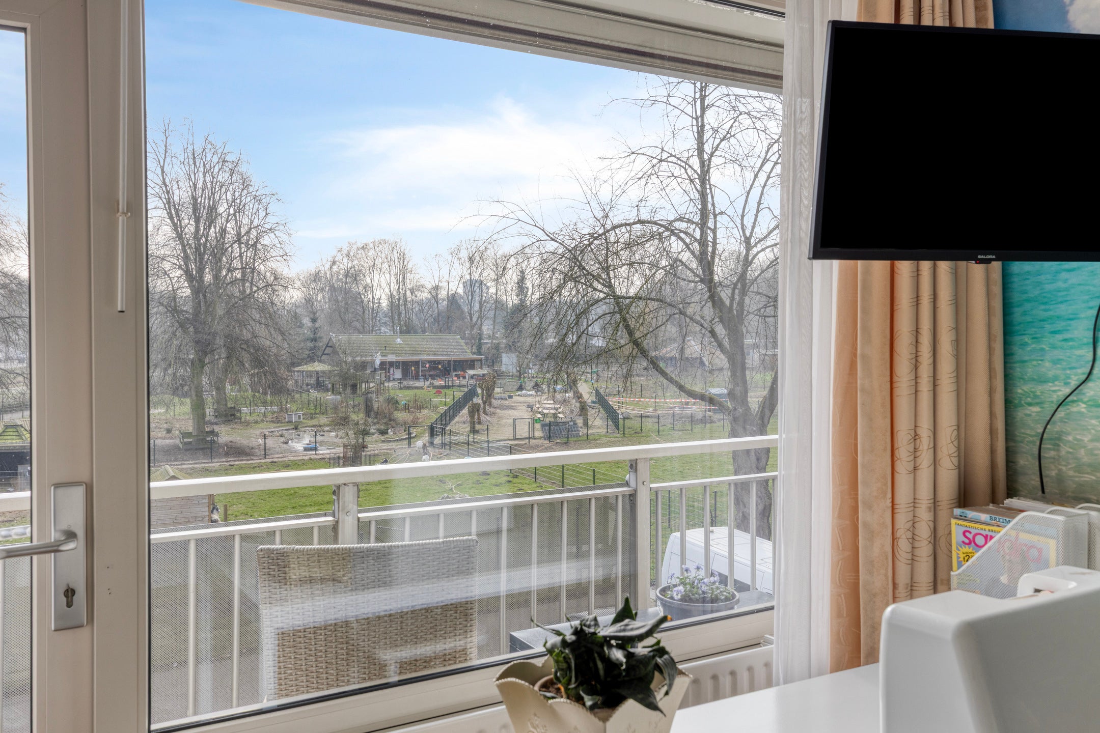 Dit prachtig gelegen drie-kamer appartement bevindt zich op de tweede verdieping van de populaire Meanderflat, aan de rand van het westelijk stadsdeel. Oorspronkelijk een vierkamerappartement, is het slim heringericht, met veel bergruimte en een open werkkamer die de woonkamer en het zuiden gerichte balkon verbindt. De lichte woonkamer biedt uitzicht op het dierenpark en is ingericht met een praktische vaste kast en airco. De vernieuwde keuken is van alle gemakken voorzien. Er zijn twee volwaardige slaapkamers, een moderne badkamer met inloopdouche, en een separate toiletruimte. Het complex ligt in een groene omgeving, met goede verbindingen naar voorzieningen en recreatiegebieden. Een garagebox is apart aan te kopen.
