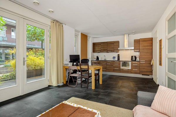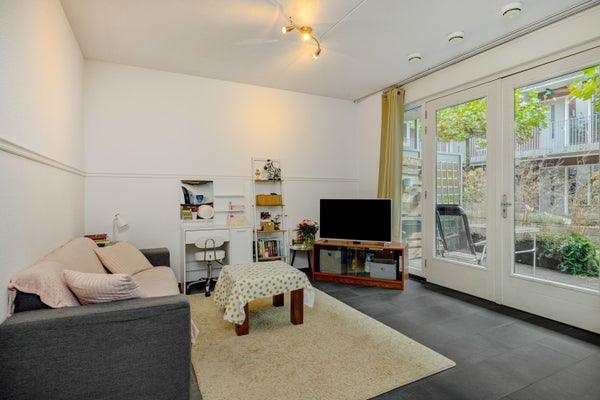 - De benedenwoning heeft een woonoppervlakte van 54 m² en beschikt over 2 kamers, waarvan 1 slaapkamer;