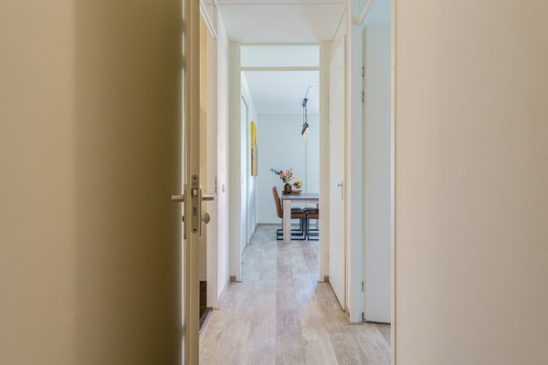 - De portiekflat heeft een woonoppervlakte van 64 m² en beschikt over 3 kamers, waarvan 2 slaapkamers;
