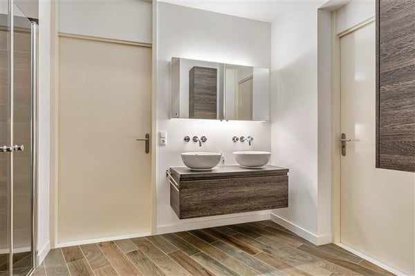 De badkamer is een waar pronkstuk. Stel je voor: je dag starten onder de ruime regendouche met de sunshower aan of afsluiten in een warm schuimbad met zachte muziek op de achtergrond. Alles voelt luxueus, dankzij de hoogwaardige materialen en tijdloze uitstraling.