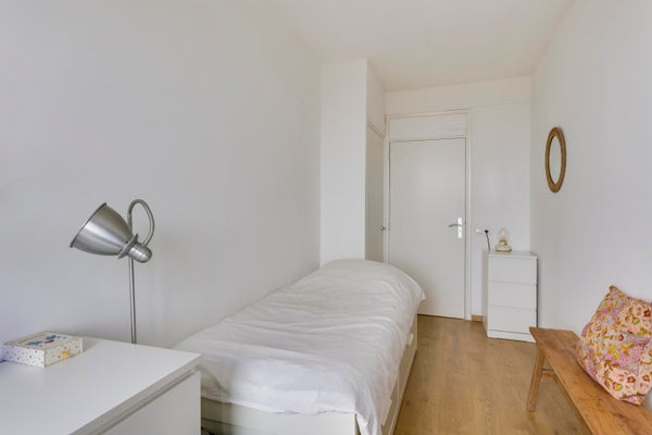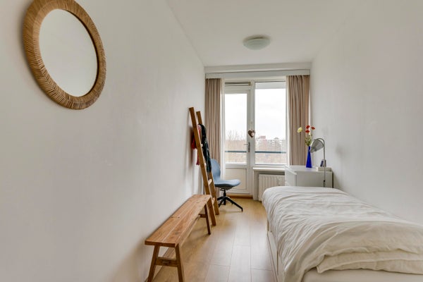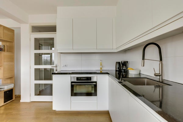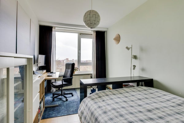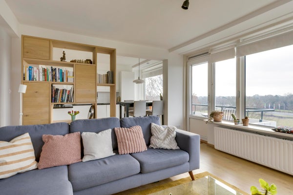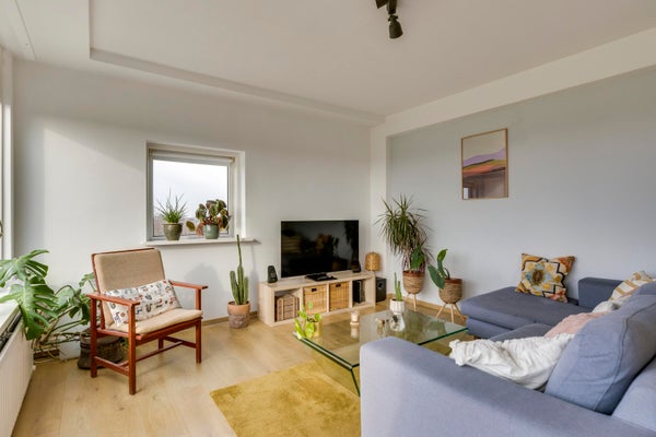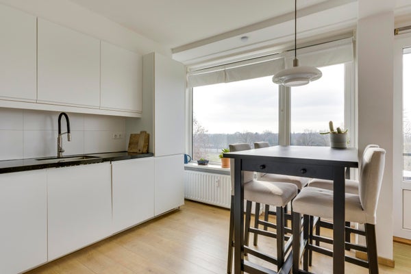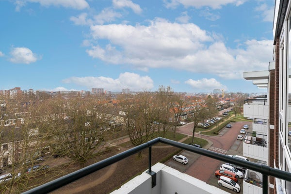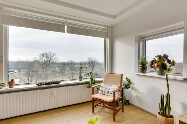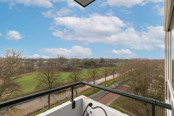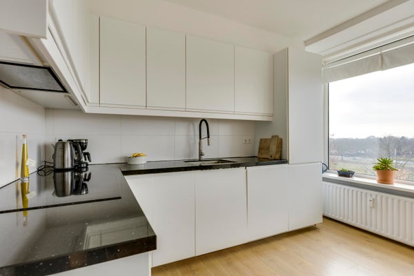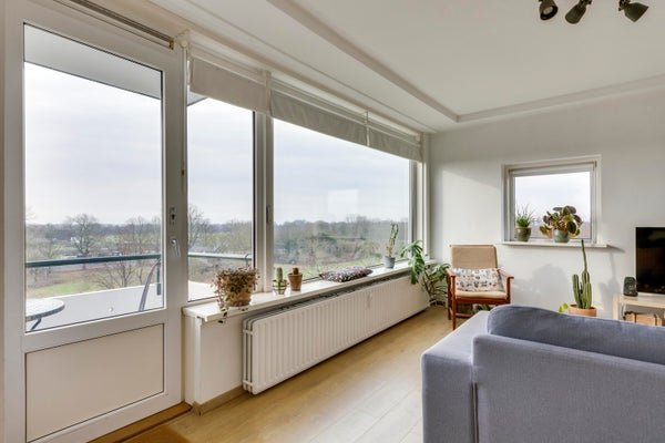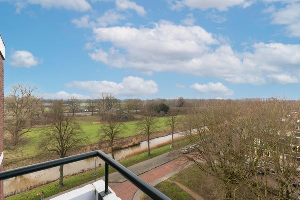 Dit aantrekkelijke driekamer-hoekappartement bevindt zich op de zesde verdieping van een rustig gelegen complex, op 5-10 minuten fietsen van het centrum van Den Bosch. Het appartement is licht en instapklaar, met twee balkons op het zuidwesten die prachtig uitzicht bieden over het natuurgebied. Binnen vindt u een ruime hal die toegang geeft tot de woonkamer, die met zijn grote ramen veel lichtinval heeft en ruimte biedt voor zowel een eet- als zitgedeelte. Naast de woonkamer ligt een praktisch ingerichte open keuken, voorzien van moderne inbouwapparatuur. Er zijn twee slaapkamers, waarvan de grootste direct toegankelijk is vanaf de hal. De moderne badkamer is uitgerust met een inloopdouche. Tevens is er een aparte wasruimte. De maandelijkse V.v.E. bijdrage bedraagt €293,78 en het voorschot voor verwarming is €90.