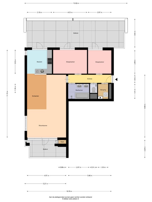 - De galerijflat heeft een woonoppervlakte van 90 m² en beschikt over 3 kamers, waarvan 2 slaapkamers;