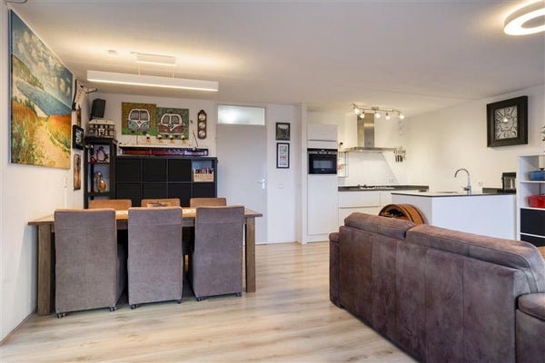 Bij binnenkomst in dit heerlijke appartement voel je meteen de combinatie van gezelligheid en modern comfort. Het is alsof alles op zijn plek valt. De lichte woonruimte met zachte, neutrale tinten ademt een kalme sfeer, perfect om na een lange dag helemaal tot rust te komen. De woonkamer loopt naadloos over in de halfopen keuken. Zie je het al voor je? Jij in je element, terwijl je een verse pasta maakt voor vrienden of je geliefde. Het aanrechtblad biedt niet alleen veel werkruimte, maar maakt ook dat de keuken een stijlvolle eye-catcher in je interieur is.