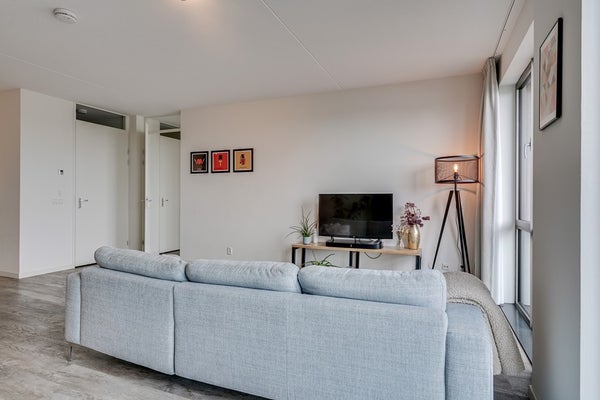 - De portiekflat heeft een woonoppervlakte van 82 m² en beschikt over 3 kamers, waarvan 2 slaapkamers;