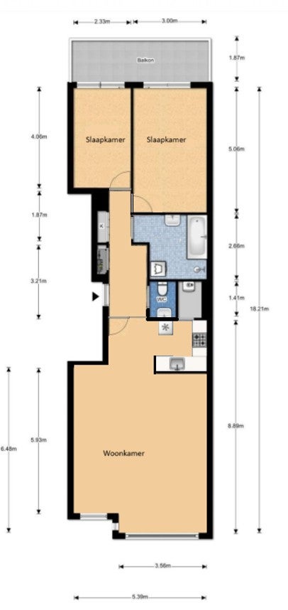 • De galerijflat heeft een woonoppervlakte van 88 m² en beschikt over 3 kamers, waarvan 2 slaapkamers;