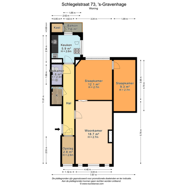 - De portiekflat heeft een woonoppervlakte van 61 m² en beschikt over 3 kamers, waarvan 2 slaapkamers;