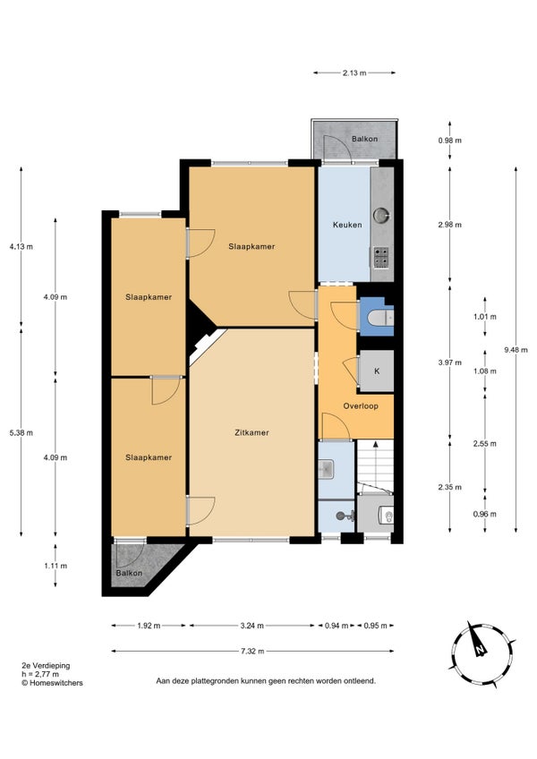 - De bovenwoning heeft een woonoppervlakte van 72 m² en beschikt over 4 kamers, waarvan 3 slaapkamers;