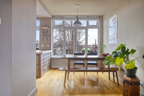 De woning beschikt over een lichte en sfeervolle woon-/eetkamer met een minimale inkijk. Dankzij de gunstige ligging en grote raampartijen geniet u hier de hele dag van een aangename natuurlijke lichtinval.
