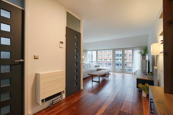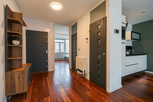 Je komt de woning binnen via een ruime hal met meterkast, die je meteen het gevoel geeft van ruimte en licht. Vanuit de hal loop je de lichte en royale woonkamer in, waar de openslaande deuren leiden naar een zonnig balkon op het zuidoosten : Geniet in de middag van de zon en het uitzicht over de charmante straat en de levendige omgeving.