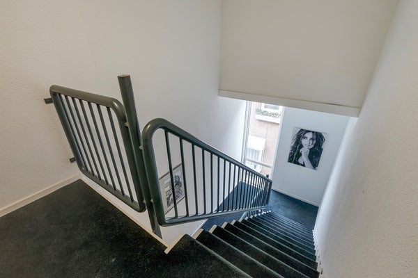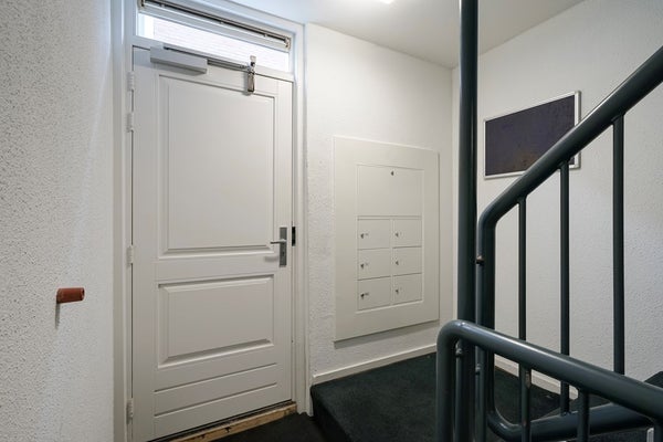 Entree via de gemeenschappelijke binnenplaats naar het trappenhuis, dat volledig is voorzien van tapijt en een uitnodigende uitstraling heeft, richting de 3e verdieping.
