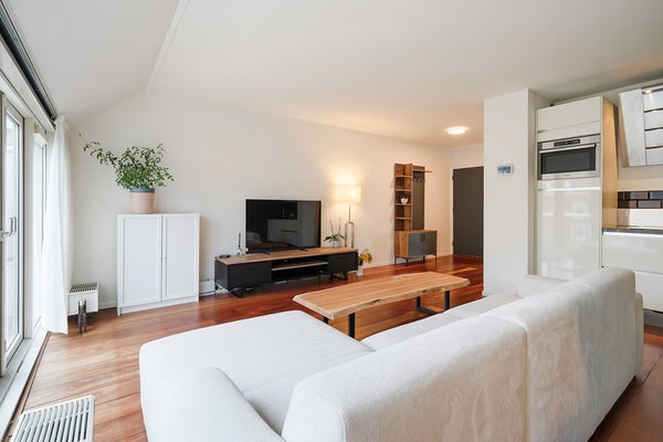Door het hele appartement ligt een hoogwaardige houten vloer, die warmte en sfeer toevoegt en het geheel een gezellig, knus karakter geeft.