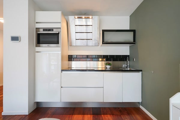 • Moderne keuken met combimagnetron, AEG afzuigkap, vaatwasser en inductiekookplaat