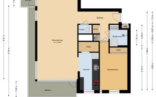 - De galerijflat heeft een woonoppervlakte van 65 m² en beschikt over 2 kamers, waarvan 1 slaapkamer;